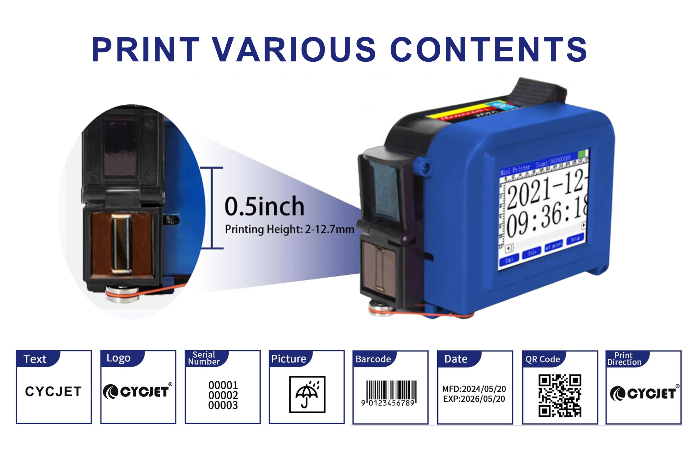 CYCJET is the brand name of Yuchang Industrial Company Limited. As a manufacturer, CYCJET have more than 20 years of experience for R& D different types of handheld inkjet printing solution, Laser printing solution, and portable marking solution, High Resolution Printing solution in Shanghai China.