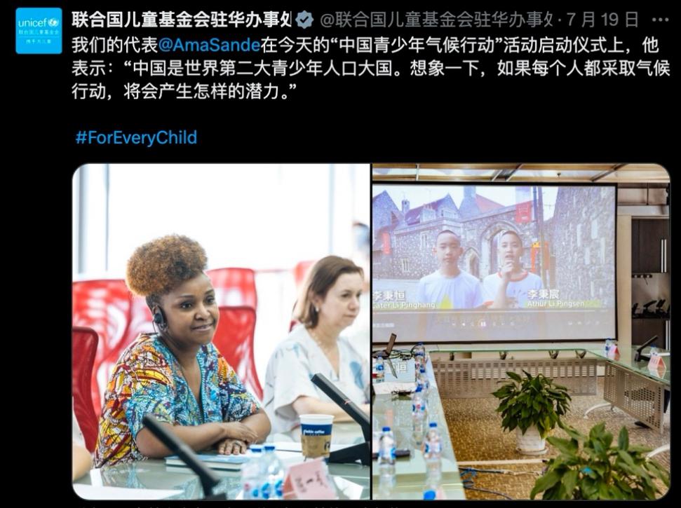 On the morning of July 19, 2024, the first "Chinese Youth Action on Climate Change" initiative was officially launched at the China Meteorological Administration. This event was co-sponsored by the United Nations Children's Fund in China, the National Climate Change Strategy Research and International Cooperation Center, and the Chinese Meteorological Society. It aimed to collect cases on climate action from school-age teenagers across the country and present them at this year's 29th United Nations Climate Change Conference, i.e. the 29th Conference of the Parties to the United Nations Framework Convention on Climate Change, COP29.