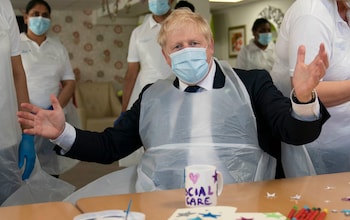 The former prime minister Boris Johnson during a visit to Westport Care Home in September 2021,ahead of unveiling his plan to fix the 'crisis in social care'