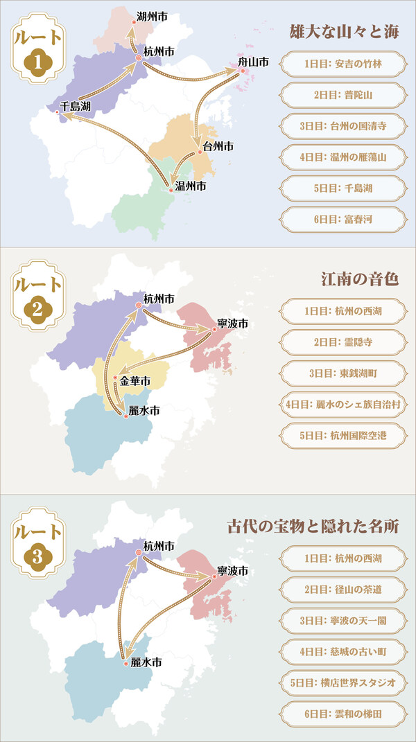 The threethemed routes not only showcases Zhejiang's diverse tourism resources but also fosters deeper cultural and tourism cooperations between Zhejiang and Japan.