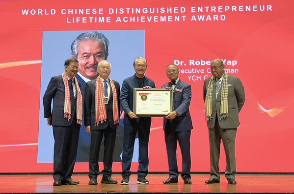 PHNOM PENH,Cambodia,Nov. 28,2024 -- Dr Robert Yap,Executive Chairman ofYCH Group,has been awarded the 2024 World Chinese Distinguished Entrepreneur Lifetime Achievement Award at the Global Chinese Economic & Technology Summit (GCET 2024) in Phnom Penh,Cambodia. This prestigious award recognises Dr Yap's enduring contributions to fostering economic collaboration,advancing regional trade efficiency,and strengthening ties within the global Chinese diaspora. His visionary leadership has been instrumental in advancing sustainable economic integration and enhancing ASEAN-China trade relations.