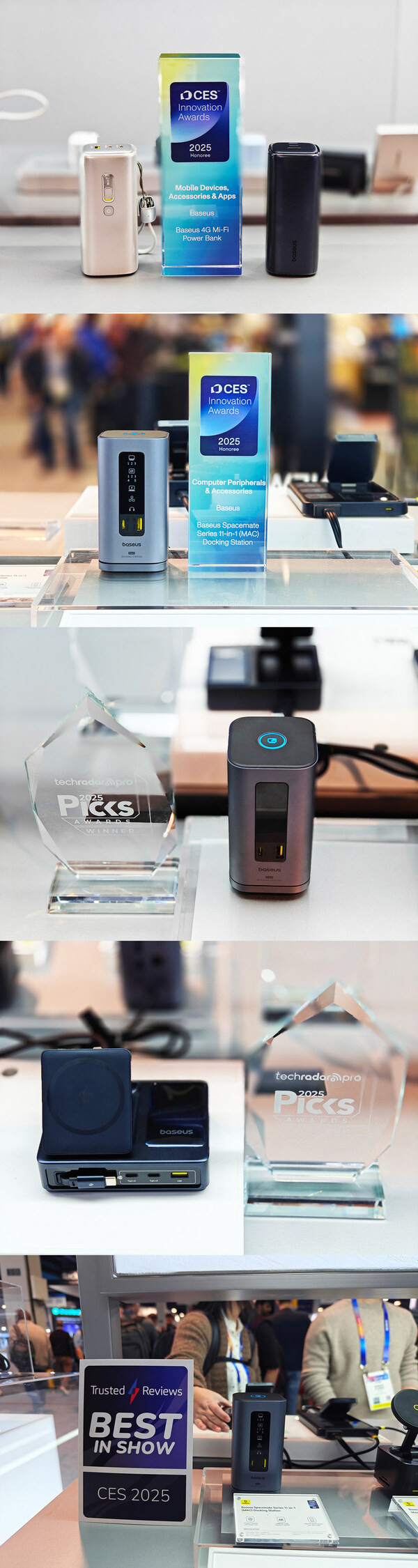The five prestigious awards garnered at CES 2025 further cement Baseus' position as an industry leader. With two CES Innovation Awards,two TechRadar Pro Picks Awards,and the Trusted Reviews Best in Show Award,Baseus showcases its unwavering dedication to innovation and excellence.