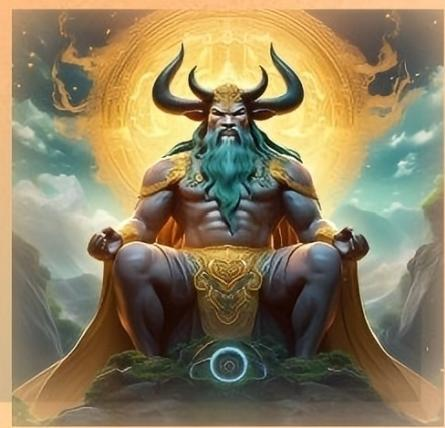 Emperor Shennong, depicted as a human with an ox head, runs through ancient Chinese mythology. The ox head symbolizes the gifts and strength of nature, while the human figure represents wisdom and enlightenment. Similar imagery appears in the myths of other civilizations, such as:
