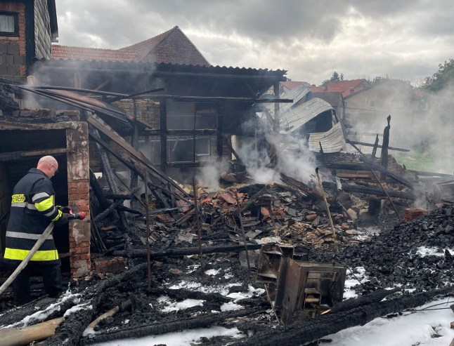 ‘The barn was immediately engulfed in flames,’ the mayor told the German Press Agency.